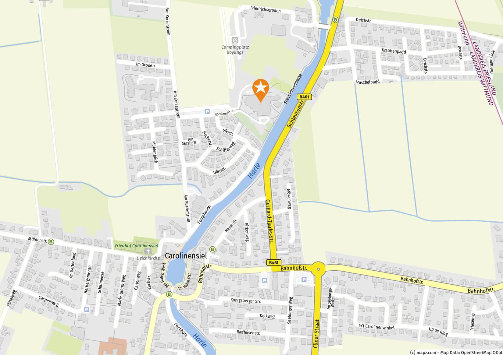 Lageplan der Cliner Quelle in Carolinensiel-Harlesiel
